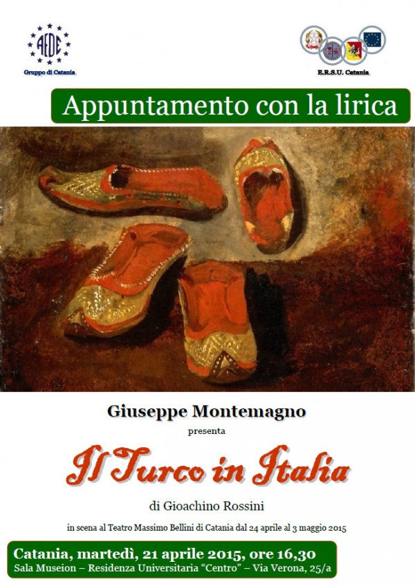Martedì 21 aprile alle 16:30, nella Sala Museion della Residenza universitaria “Centro” (via Verona, 25/A), verrà presentato Il Turco in Italia, dramma buffo in due atti di Gioachino Rossini, in scena al Teatro Massimo Bellini di Catania dal 24 aprile al 3 maggio 2015.