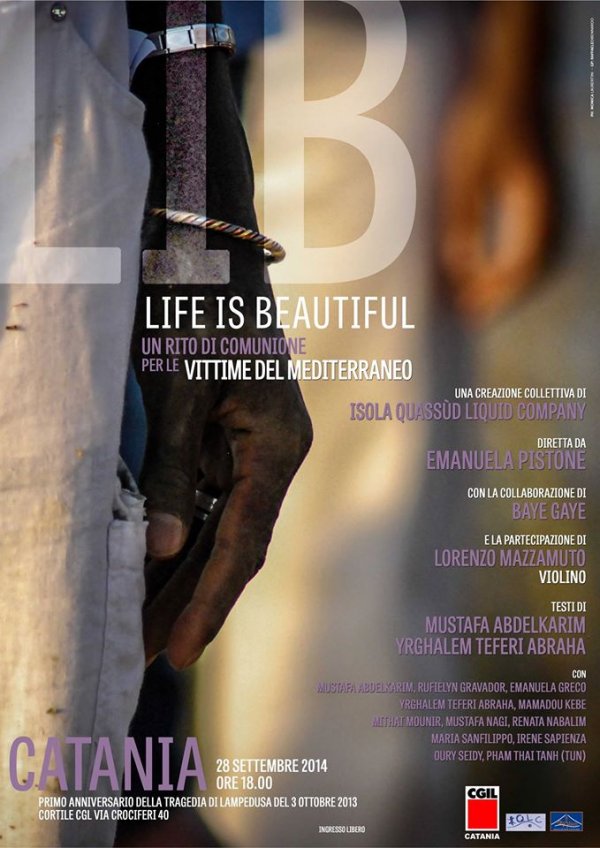 Giovedì 30 (al Castello di Calatabiano, Calatabiano - Me), venerdi 31 luglio (Monte Troina, Pedara - Ct) alle 19, Isola Quassùd Liquid Company replicherà lo spettacolo Life is beautiful. Un rito di comunione per le vittime del Mediterraneo, in due luoghi molto suggestivi e in compagnia di una band musicale d'eccezione:il percussionista Luca Zarbano, la giovanissima cantante Rachele Amore e gli scatenati musicisti senegalesi di Afro Family Soul.