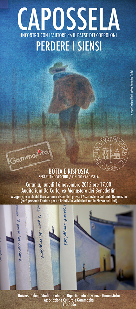 L’incontro intitolato "Perdere i siensi" è promosso dall’associazione culturale Gammazita, dal dipartimento di Scienze umanistiche dell’Università e dalla rassegna Efestiade. Capossela sarà "intervistato" dal prof. Sebastiano Vecchio, docente di Filosofia e Teoria dei linguaggi al Disum. Al termine dell’incontro l'artista incontrerà i suoi fan nella sede dell’associazione Gammazita, per un brindisi a sostegno dell’iniziativa "Piazza dei libri".