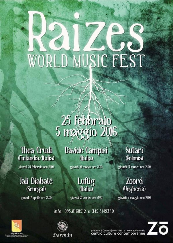 - Thea Crudi : Giovedì 25 febbraio alle 21, al Centro Zo di Catania, la cantante italo-finlandese in concerto, per il "Raizes - World Music Fest". A cura dell'Associazione Darshan (25 febbraio 2016)
