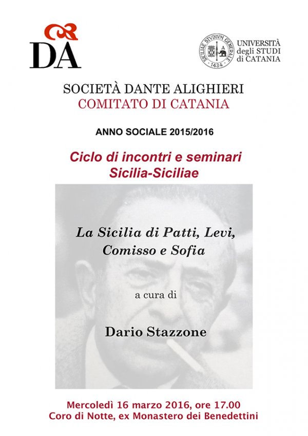 Mercoledì 16 marzo alle 17, nel Coro di notte del Monastero dei Benedettini, il presidente del Comitato di Catania della Società Dante Alighieri Dario Stazzone terrà il seminario “La Sicilia di Patti, Levi, Comisso e Sofia”.