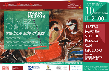 Domenica 10 aprile alle 21, al Teatro Machiavelli di Catania, la Camerata Polifonica Siciliana presenta City Jazz Collective, the blue side of jazz, concerto per piano, basso, chitarra, batteria, tromba, sax alto, sax tenore e voce.