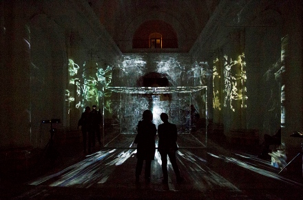 L' innovativa operazione di interazione, vede il dialogo tra due diverse modalità espressive, accomunate dalla relazione che entrambe intrattengono con la luce, lo spazio, la trasparenza e la riflettenza, a generare insieme l'inaspettata ed eterea apparizione di un empireo, imponderabile "luogo" sospeso e luminoso.