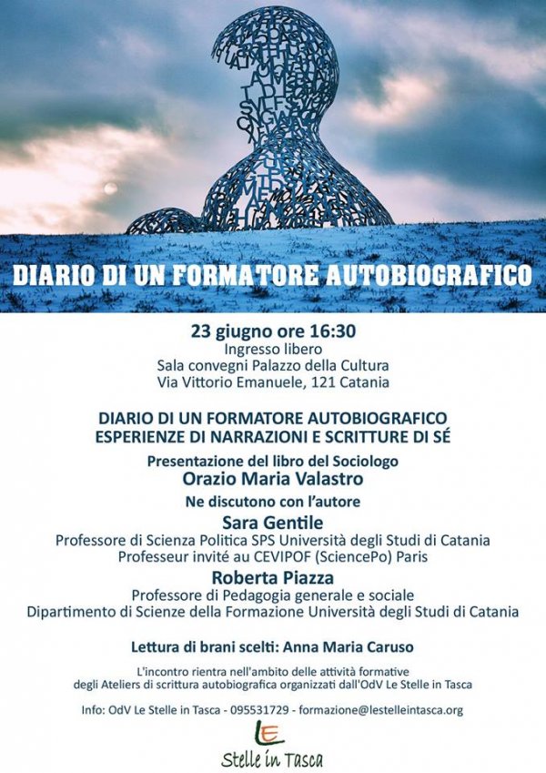Giovedì 23 giugno alle 16:30, al Palazzo della Cultura di Catania, sarà presentato il libro "Diario di un formatore autobiografico" del sociologo Orazio Maria Valastro.