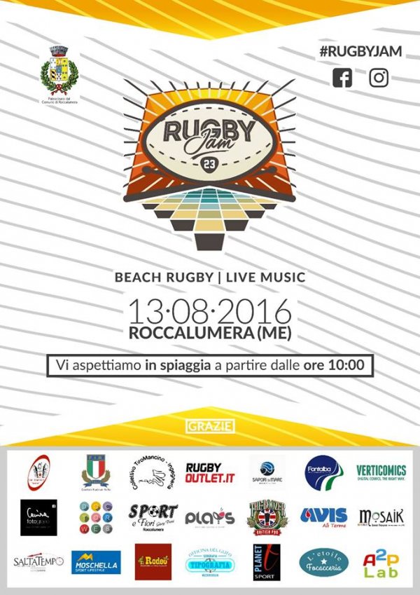 Rugby Jam prevede un torneo di Beach Rugby maschile e femminile e un grande concerto finale, momenti di sport e musica che si svolgeranno sull'incantevole spiaggia in riva allo Jonio.