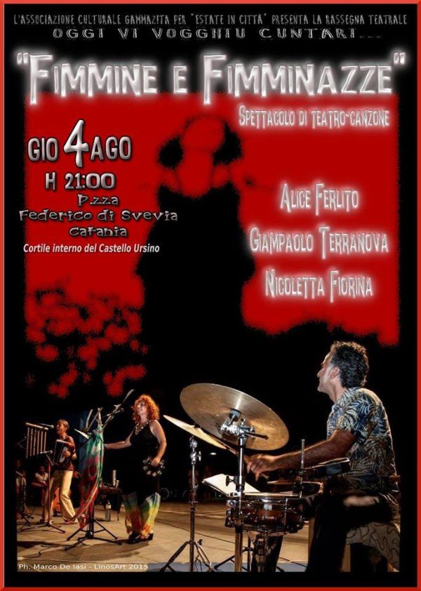 Giovedì 4 agosto alle 21, al Castello Ursino di Catania, andrà in scena Fimmine e Fimminazze, lo spettacolo di teatro-canzone per la rassegna teatrale "Oggi Vi Vogghiu Cuntari", organizzata dall'Associazione Culturale Gammazita.