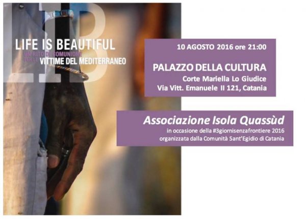 Mercoledì 10 agosto alle 21, al Palazzo della Cultura di Catania, va in scena lo spettacolo "Life is Beautiful - Un rito di comunione per le vittime del Mediterraneo" di Isola Quassùd Liquid Company.
