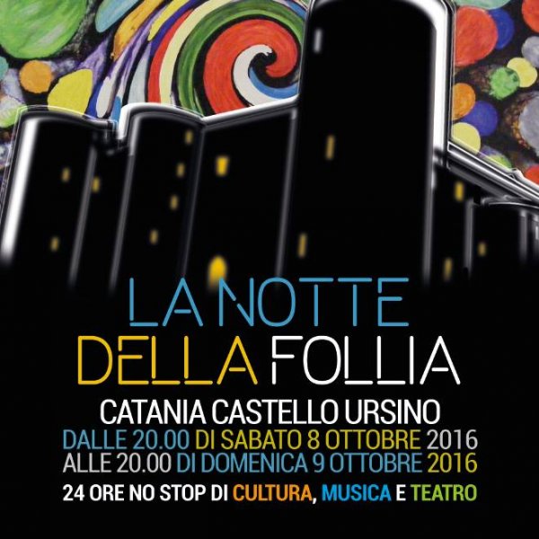 Dalle ore 20 di sabato 8 ottobre alle ore 20 di domenica 9 ottobre, le magnifiche sale dell’antico maniero federiciano verranno “invase” da “La Notte della Follia”, un laboratorio culturale in cui confluiranno realtà associative e aggregative della città di Catania che proporranno le loro evoluzioni creative e artistiche per sostenere un messaggio culturale e sociale legato al tema del genio e della follia.