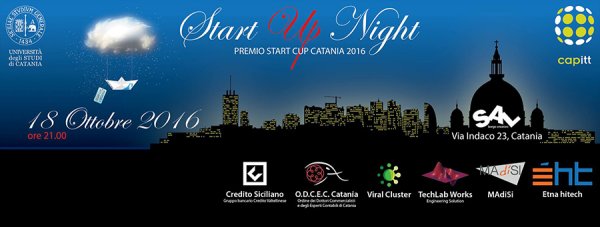 Martedì 18 ottobre alle 21, al Sal - Spazio Avanzamento Lavori di Catania (via Indaco 23), si terrà la Start Up Night, la cerimonia di chiusura della terza edizione della Start Cup Catania, la business plan competition organizzata dal Capitt dell'Università di Catania.