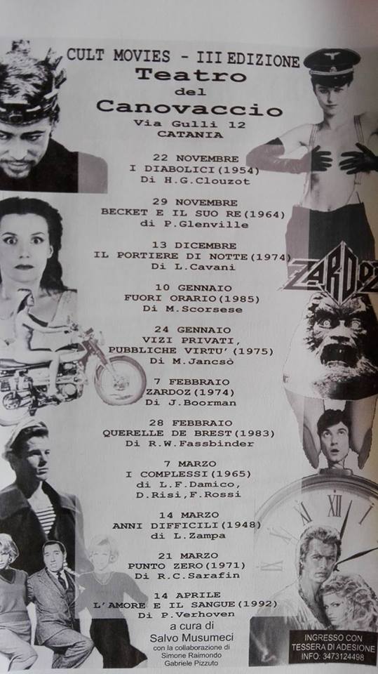 - Zardoz: Martedì 7 febbraio, al Teatro del Canovaccio (Catania), proiezione del film di John Boorman per la rassegna cinematografica “Cult Movies” (07 febbraio 2017)