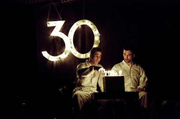 Un laboratorio improbabile, due tute bianchissime, come oggetto di studio il compleanno. Due ricercatori sulla base di dati scientifici e statistici, sono alle prese con la sperimentazione delle giuste formule e tecniche per evitare catastrofi e sprechi durante i festeggiamenti. Pop-corn e trombette, come oggetti stereotipi di una ritualità fatta di forma e non di sostanza, candeline che raccontano i desideri di una vita che scorre tra ambizioni, sogni, perdite, aspirazioni.