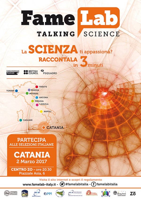 Giovedì 2 marzo si svolge a Catania la selezione locale di FameLab Italia 2017, la competizione internazionale per giovani ricercatori scientifici con il talento della comunicazione.