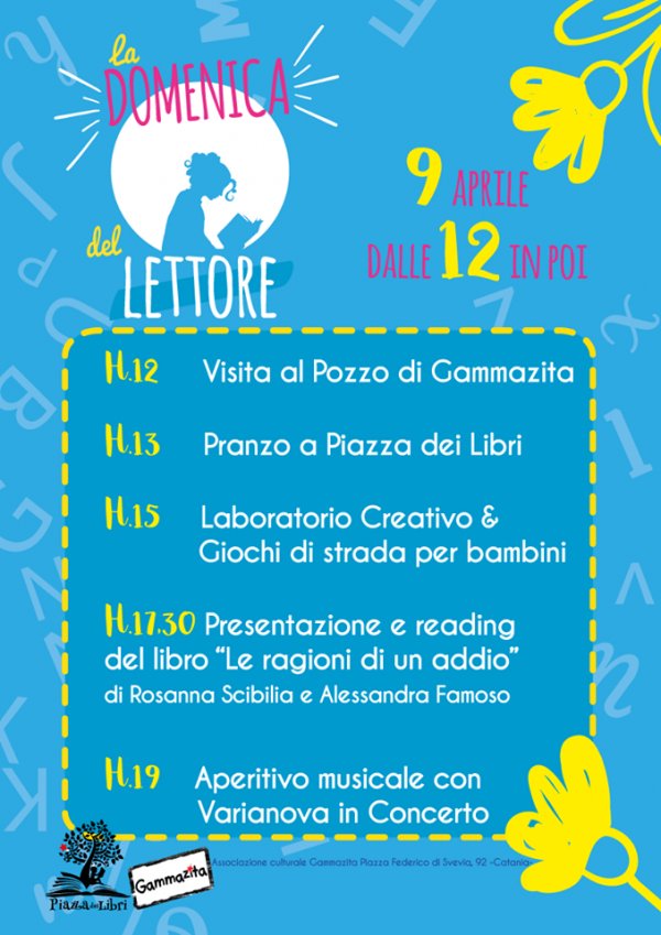 Domenica 9 aprile alle 12, in piazza Federico di Svevia a Catania, torna "La domenica del lettore e della lettrice a Piazza dei Libri", l'appuntamento mensile all'aperto dell'associazione Gammazita, dedicato alle arti narrative.