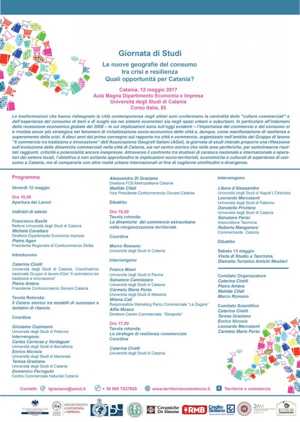 Venerdì 12 maggio alle 10, nell'aula magna del Palazzo delle Scienze (dipartimento Economia e Impresa, corso Italia 55, Catania), si apre la giornata di studi “Le nuove geografie del consumo, tra crisi e resilienza. Quali opportunità per Catania?”