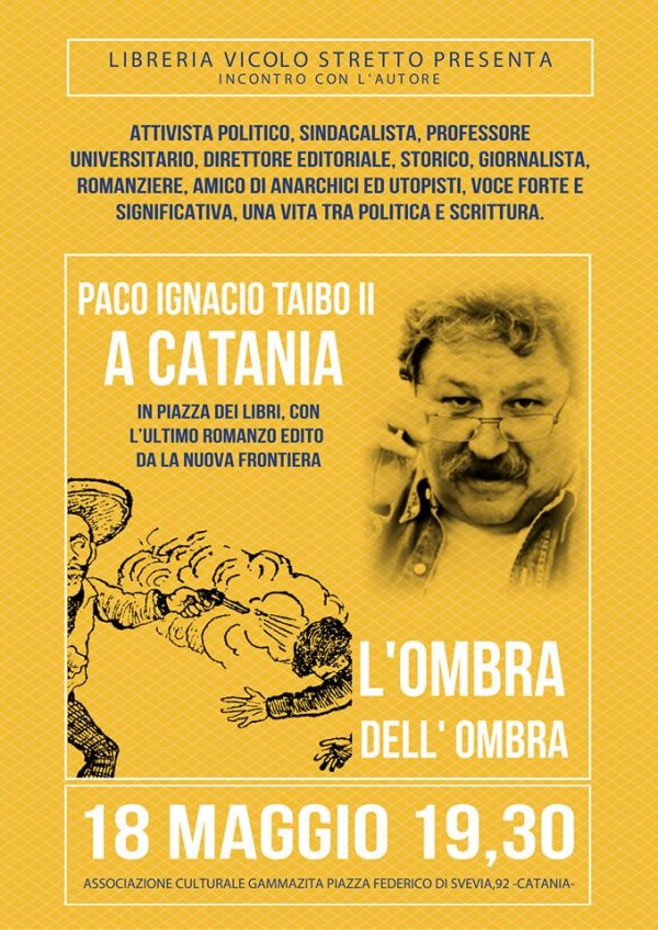 Giovedì 18 maggio alle 19:30, nello spazio culturale Gammazita a Catania, Libreria Vicolo Stretto presenta l'incontro con l'autore Paco Ignacio Taibo II, e il suo ultimo romanzo "L'ombra dell'ombra".
