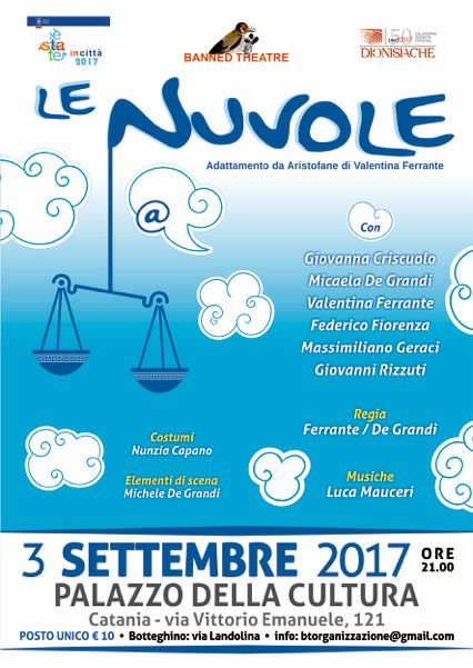 Domenica 3 settembre alle 21, a Palazzo della Cultura a Catania, va in scena lo spettacolo Le Nuvole di Aristofane, con il Banned Theatre.