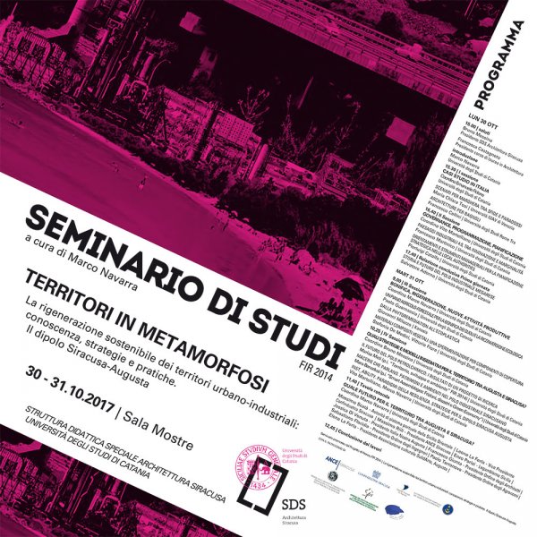 Lunedì 30 e martedì 31 ottobre, nella sala mostre della struttura didattica di Architettura dell'Università di Catania (Siracusa, piazza Federico di Svevia), si svolge il seminario di studi "Territori in metamorfosi - La rigenerazione sostenibile dei territori urbano-industriali: conoscenza, strategie e pratiche. Il dipolo Siracusa-Augusta".