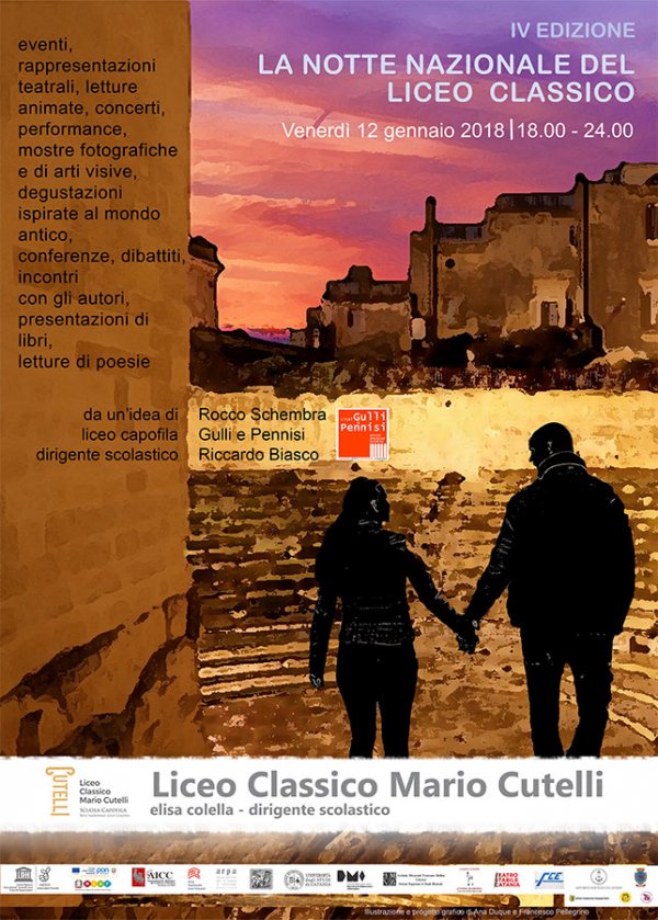 Venerdì 12 gennaio, a partire dalle 18, il Liceo classico “Mario Cutelli” di Catania organizza la IV edizione della Notte nazionale del Liceo classico che avrà luogo nella sede dell’Istituto scolastico e che quest’anno è intitolata “Trans mare”.