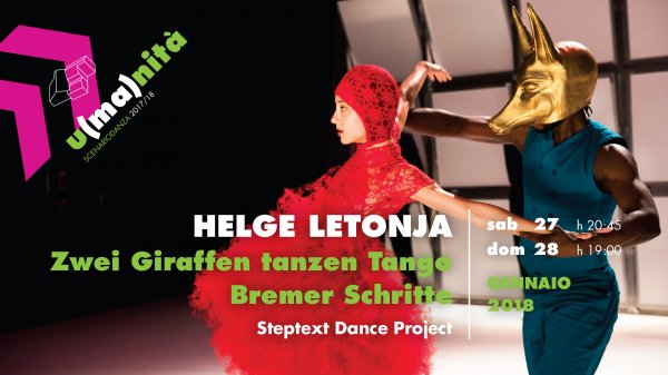 Sabato 27 (ore 20:45) e domenica 28 gennaio (ore 19), da Scenario Pubblico a Catania, la compagnia steptext dance project (D) mette in scena lo spettacolo Zwei Giraffen tanzen Tango – Bremer Schritte, in co-produzione con Theater Bremen, organizzate nell'ambito della rassegna u(ma)nità.