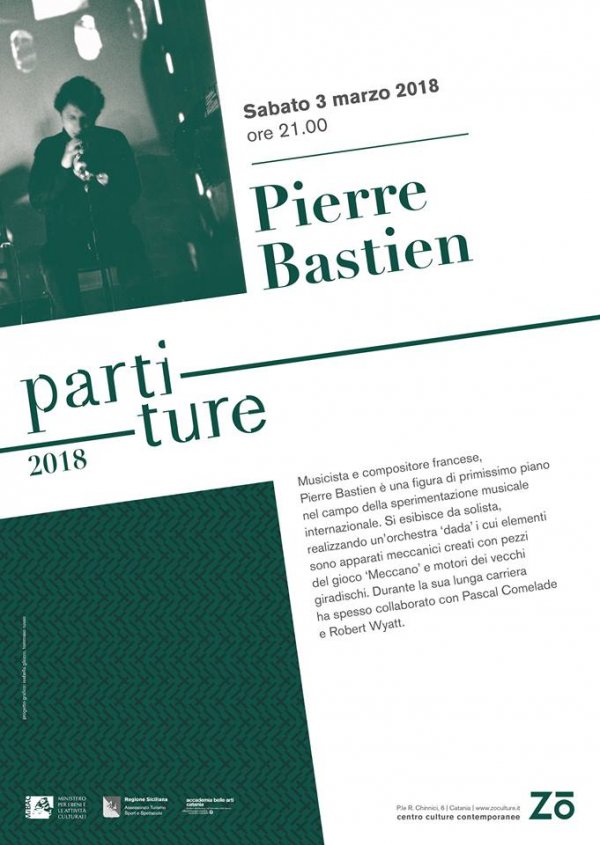 Sabato 3 marzo alle 21, al Centro Zo di Catania, il veterano della sperimentazione francese Pierre Bastien si esibirà in concerto, per la rassegna "Partiture".