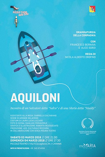 Aquiloni, prodotto in collaborazione tra MezzARIA e SenzaMisuraTeatro, ha ricevuto diversi premi fra cui per Il Premio Nazionale di Teatro - Città di Leonforte: Premio Miglior Regia, Premio Miglior Attore, Premio Miglior Attrice e Premio Miglior Spettacolo. Con Francesco Bernava e Alice Sgroi, regia di Nicola Alberto Orofino.
