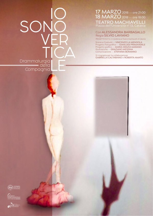 Sabato 17 (ore 21) e domenica 18 marzo (ore 18), al Teatro Machiavelli di Catania, andrà in scena la pièce "Io sono verticale" (Drammaturgia della Compagnia), con Alessandra Barbagallo, per la regia di Silvio Laviano.