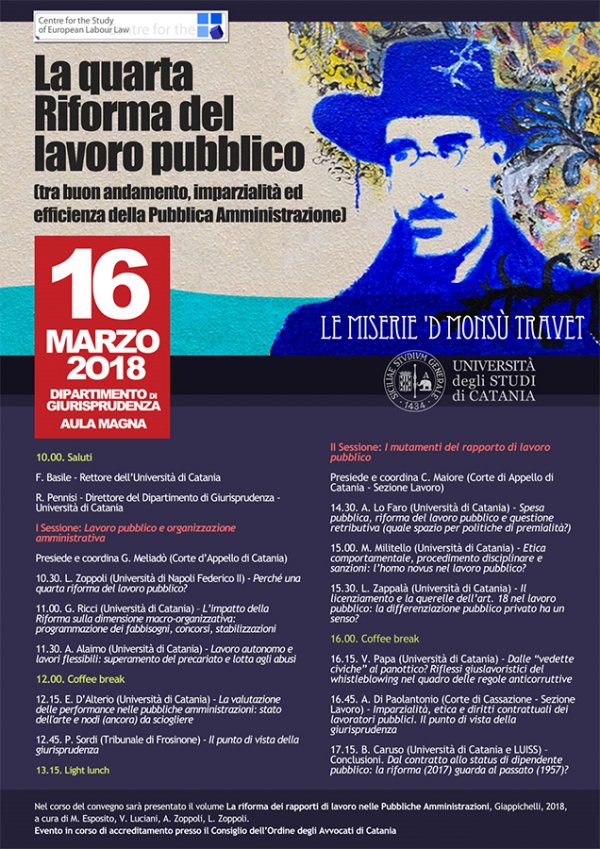 L'evento - in corso di accreditamento presso il Consiglio dell'Ordine degli Avvocati di Catania - è organizzato dal Dipartimento di Giurisprudenza con il Centre for the Study of European Labour Law.