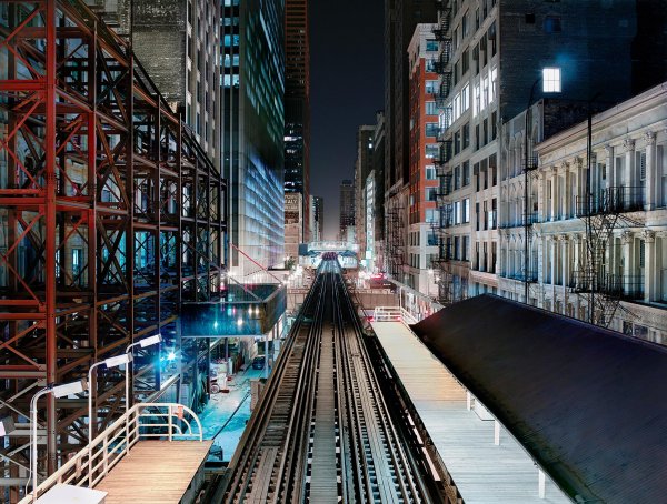 La presenza dell’uomo si coglie appena nell’equivoco delle scie luminose lasciate delle auto in movimento, o da alcune figure dai contorni mossi, sfocati. Le città sono avvolte in una luce innaturale, a tratti cinematografica, quasi che il fotografo fosse capace di piegare la realtà a suo piacimento, scegliendo, tra i colori proposti dallo spettro cromatico, quelli più straordinari e insoliti.