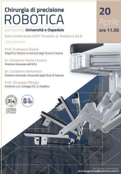 All’incontro – dal titolo “Chirurgia di precisione - Partnership Università e Ospedale” - interverranno il rettore Francesco Basile, il direttore generale dell’Aou Policlinico-Vittorio Emanuele Salvatore Paolo Cantaro, il direttore generale dell’Ateneo Candeloro Bellantoni, il direttore della Clinica urologica dell’Università di Catania Giuseppe Morgia, coordinatore delle attività di robotica chirurgica.