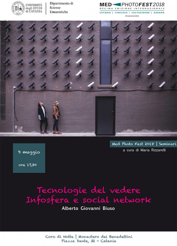 Il primo seminario in programma sarà tenuto dal prof. Alberto Giovanni Biuso (Filosofia teoretica, Università di Catania) ed è dedicato al tema "Tecnologie del vedere - Infosfera e social network".