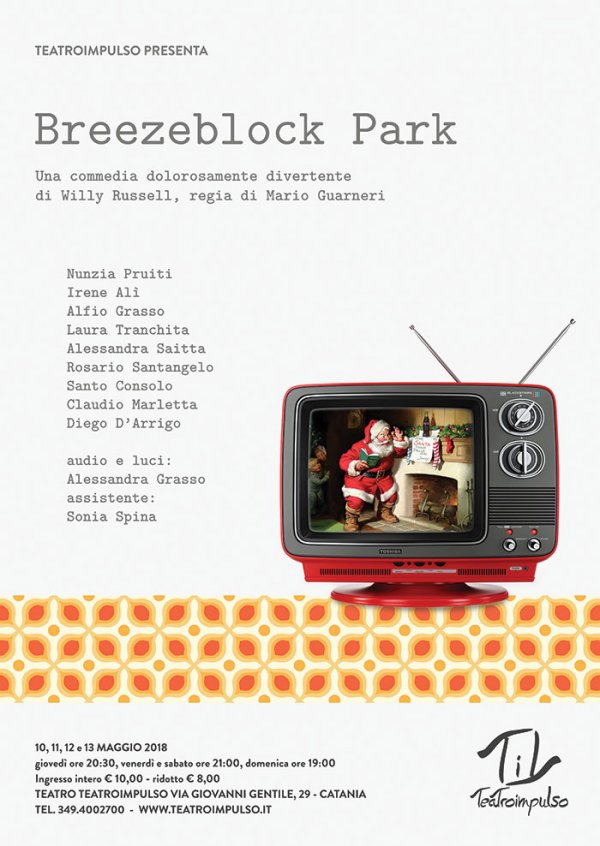 Giovedì 10 (ore 20:30), venerdì 11 e sabato 12 (ore 21) e domenica 13 maggio (ore 19), al teatro Teatroimpulso (via Giovanni Gentile 29, Catania), va in scena la commedia del drammaturgo inglese Willy Russell "Breezeblock Park", per la regia di Mario Guarneri.