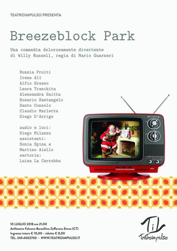 Martedì 10 luglio alle 21, all'Anfiteatro Falcone e Borsellino di Zafferana Etnea (Catania), va in scena la commedia del drammaturgo inglese Willy Russell "Breezeblock Park", per la regia di Mario Guarneri (TeatroImpulso).