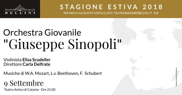 Domenica 9 settembre (ore 21), al Teatro Antico di Catania, l'Orchestra Giovanile “Giuseppe Sinopoli” si esibirà in concerto, per la stagione estiva del Teatro Massimo Bellini.
