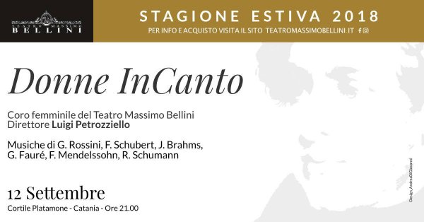 Mercoledì 12 settembre alle 21, al Cortile Platamone di Catania, si terrà il concerto "Donne InCanto", per la stagione estiva del Teatro Massimo Bellini.