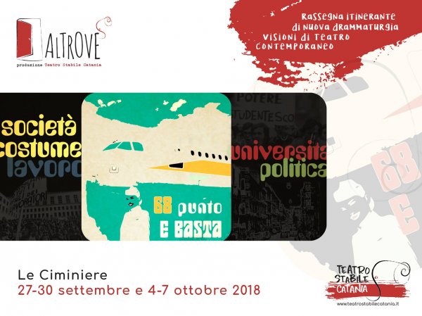 Dal 27 al 30 settembre e dal 4 al 7 ottobre (ore 21), alle Ciminiere di Catania, andrà in scena 68 punto e basta, per il cartellone di “Altrove 2018”, la rassegna itinerante di nuova drammaturgia ideata e prodotta dal Teatro Stabile di Catania nei luoghi storici della città, alla ricerca di una specifica attenzione a tematiche sociali e civili.