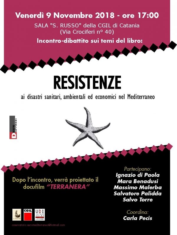 Venerdì 9 novembre alle 17:30, nella Sala “S. Russo” della CGIL di Catania, sarà presentato il libro Resistenze – ai disastri sanitari, ambientali ed economici nel Mediterraneo, di Salvatore Palidda (ed. Derive Approdi).