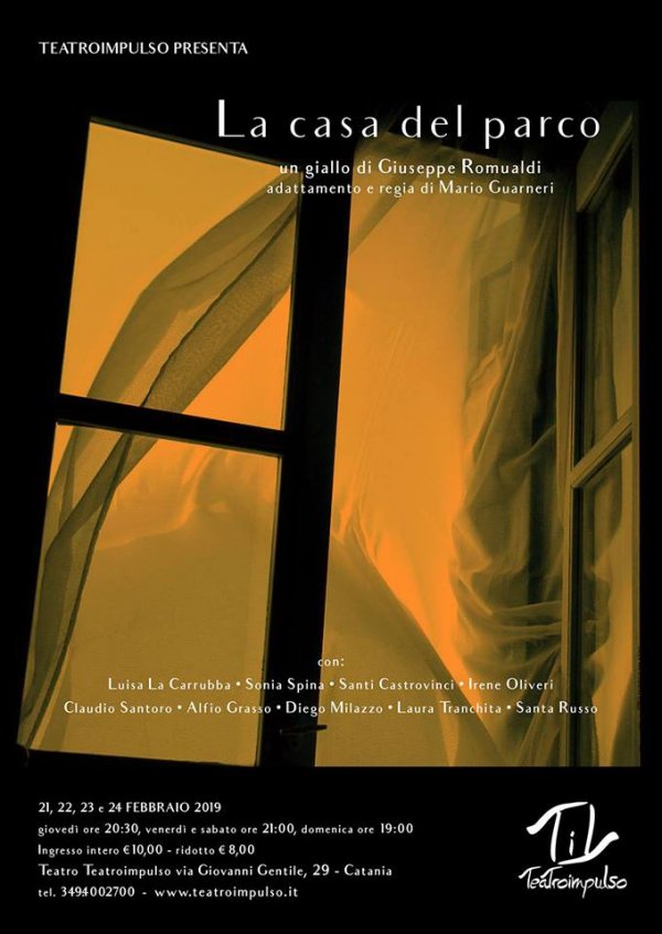 Giovedì 21 (ore 20:30), venerdì 22 e sabato 23 (ore 21) e domenica 24 febbraio (ore 19), al teatro Teatroimpulso (via Giovanni Gentile 29, Catania), va in scena il giallo di Giuseppe Romualdi "La casa del parco", il primo giallo scritto in Italia, che inaugura la stagione teatrale 2019.