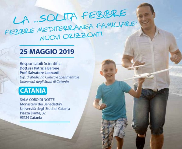 Sabato 25 maggio alle 15, al Coro di notte del Monastero dei Benedettini (Piazza Dante 32, Catania), si terrà il convengo dal titolo "La solita febbre - Febbre Mediterranea Familiare: nuovi orizzonti", organizzato dall'AIFP - Associazione Italiana Febbri Periodiche, con il coordinamento scientifico di Patrizia Barone (responsabile del centro di riferimento regionale per la prevenzione, la diagnosi e la cura delle malattie rare reumatologiche infantili) e Salvatore Leonardi (docente di pediatria generale e specialistica al Dipartimento di Medicina clinica e sperimentale).