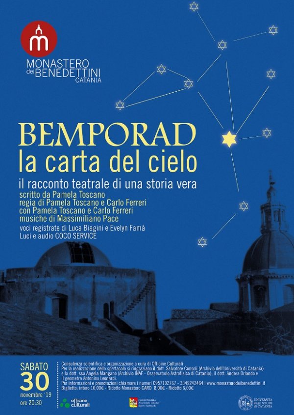 Sabato 30 novembre alle 20:30, nell’auditorium "Giancarlo De Carlo" del Monastero dei Benedettini, torna in scena lo spettacolo "Bemporad - La carta del cielo" che racconta la storia dello scienziato Azeglio Bemporad.