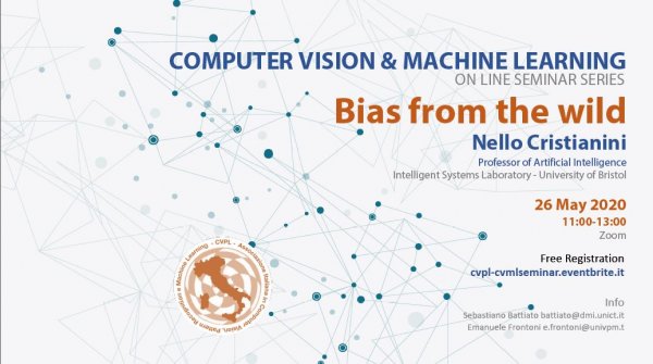 Martedì 26 maggio alle 11, si inaugura con il seminario "Bias from the Wild" il ciclo di online di seminari dal titolo "Computer Vision & Machine Learning" organizzato dai docenti Sebastiano Battiato (Università di Catania) e Emanuele Frontoni (Università Politecnica delle Marche) con il patrocinio dell'Associazione italiana per la ricerca in Computer Vision, Pattern Recognition e Machine Learning (CVPL).