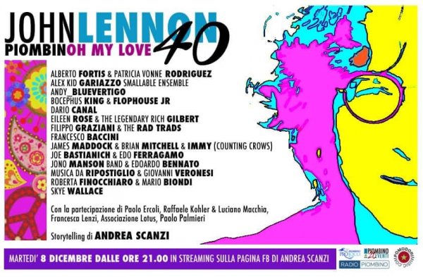 Martedì 8 dicembre alle 21, in streaming sulla pagina Facebook di Andrea Scanzi, si svolge "Piombinoh my love - Lennon40", concerto dedicato alla memoria di John Lennon nel 40° anniversario della sua scomparsa.