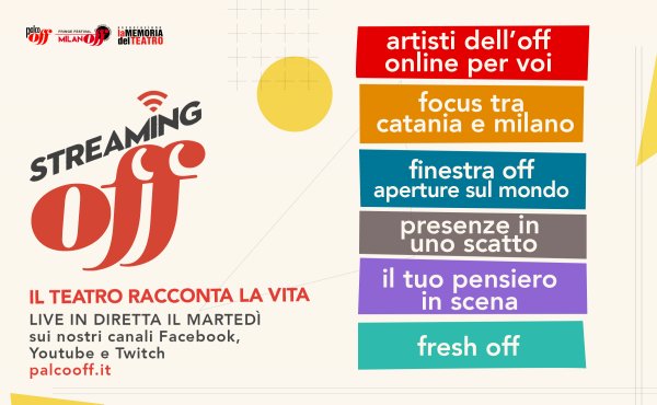 Martedì 2 marzo alle 19 sarà trasmessa su Facebook, Youtube e Twitch la quarta puntata della seconda stagione di "Streaming Off", il progetto di digitalizzazione e diversificazione dell’attività teatrale curato da Palco Off.