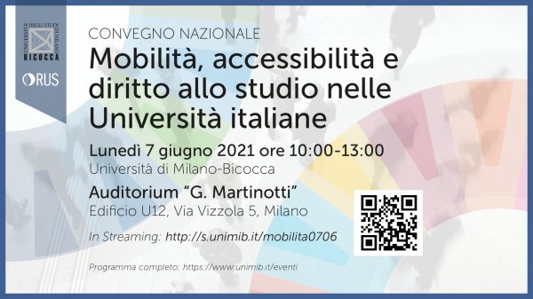 Lunedì 7 giugno alle 10, in presenza e in streaming sul canale YouTube dell'Università Milano-Bicocca, si svolge il convegno "Mobilità, accessibilità e diritto allo studio nelle Università italiane", organizzato dall'ateneo milanese insieme a RUS - Rete delle Università per lo Sviluppo Sostenibile.