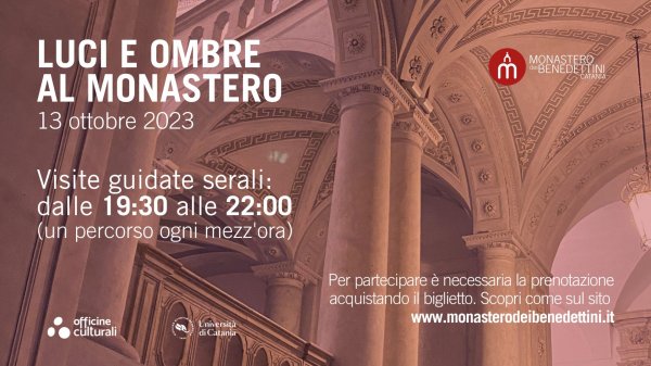 Venerdì 13 ottobre, dalle 20 alle 22 (con un percorso guidato ogni mezz’ora), si svolge al Monastero dei Benedettini di Catania “Luci e Ombre al Monastero”, l’appuntamento con le visite guidate serali alla scoperta del gioiello del Tardo Barocco siciliano.