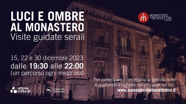 Sabato 30 dicembre, dalle 19:30 alle 22 (con un percorso guidato ogni mezz’ora), si svolge al Monastero dei Benedettini di Catania “Luci e Ombre al Monastero”, l’appuntamento con le visite guidate serali alla scoperta del gioiello del Tardo Barocco siciliano.