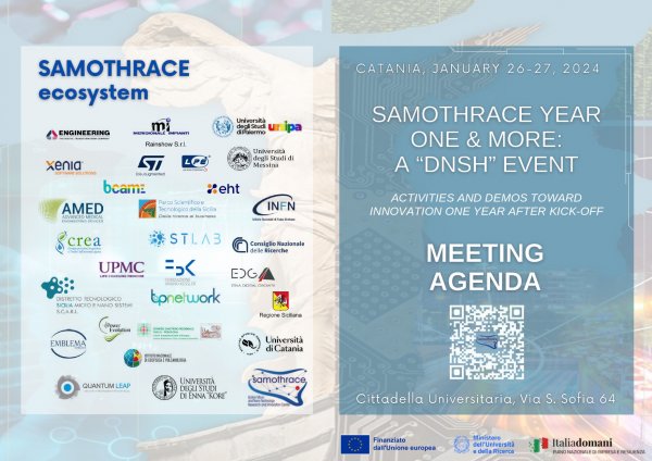 Venerdì 26 gennaio alle 10:30, nell’aula magna dell’Edificio per la didattica di Ingegneria, si terrà il meeting tecnico-scientifico “Samothrace year one and more”, che renderà noti i primi importanti risultati raggiunti nell’ambito di "Samothrace, Ecosistema siciliano dell’Innovazione", progetto finanziato con i fondi del Pnrr, di cui è capofila l’Università di Catania.