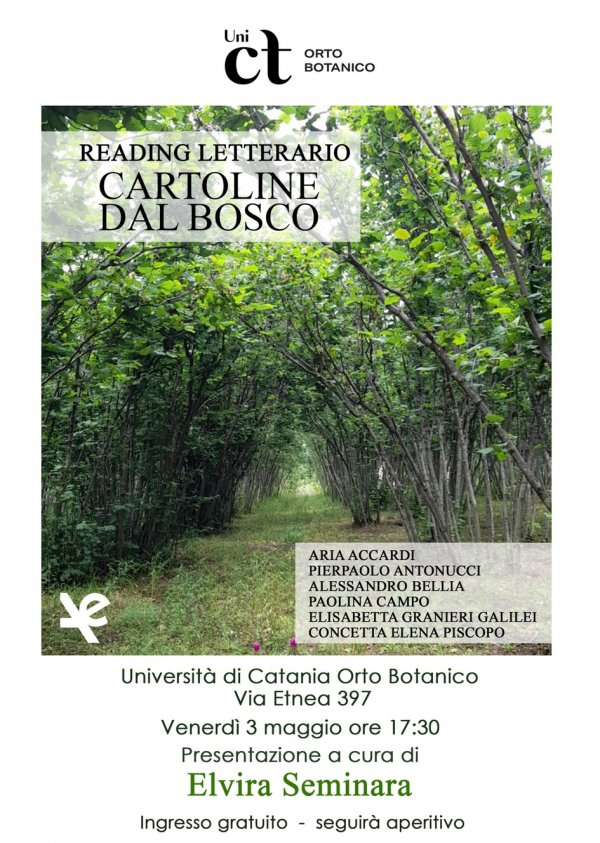 Venerdì 3 maggio alle 17:30, all'Orto Botanico di Catania, si svolge la presentazione del libro “Cartoline dal bosco” (Algra, 2023), di Elvira Seminara.