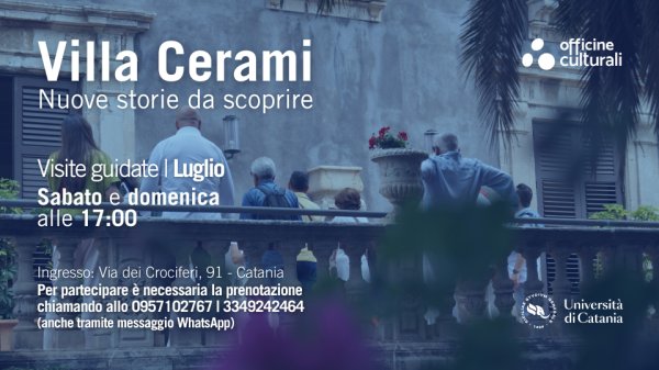 Per partecipare alle visite guidate a Villa Cerami, a cura di Officine Culturali in collaborazione con l'Università di Catania, è necessaria la prenotazione allo 0957102767 o al 3349242464 (anche messaggio Whatsapp).