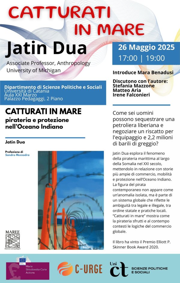 Lunedì 26 Maggio alle 17, nell'aula XXI marzo di Palazzo Pedagaggi, si presenta il libro "Catturati in Mare: pirateria e protezione nell'Oceano Indiano" di Jatin Dua (University of Michigan).