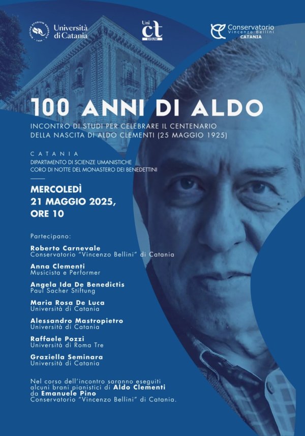 Mercoledì 21 maggio alle 10, nel Coro di notte del Monastero dei Benedettini, in occasione del centenario della nascita di Aldo Clementi (25 maggio 1925) si svolge l’incontro di studi “100 Anni di Aldo”, dedicato alla riscoperta e valorizzazione della sua opera, tra le figure più significative del panorama musicale del Novecento italiano.